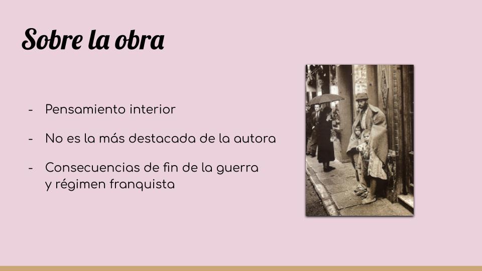 Sus obras se sitúan dentro de la literatura de posguerra. Forma parte de las llamadas novelas existenciales en las que Laforet destacó. Escribía estos relatos cortos por afición y por “amor a la literatura”. Cuando esta obra fue publicada, España estaba sufriendo los efectos del régimen franquista, con la posguerra. Era un país hundido, lleno de analfabetismo y penuria.